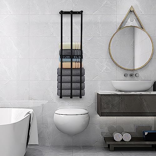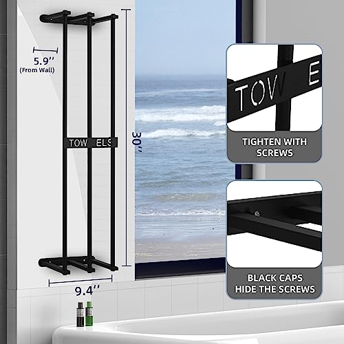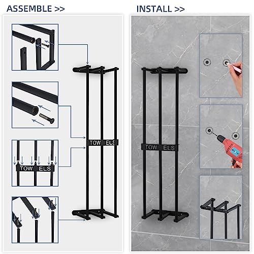 - 【High Quality】Our towel holder for bathroom wall is made of high-quality metal material,durable construction,making it won't distortion or break apart.The smooth surface of towel holder is coated black finish,which has good moisture resistance and wear resistance to protect your towels from any stains and will not scratch the towels or hands.