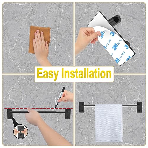 - 【Easy to assemble】Self-adhesive towel rack without drilling and without tools. Simply peel off the protective film on the back, stick the towel rack in the desired position, can be used after just 24 hours. The sticky backing is highly adhesive and can withstand 6kg.