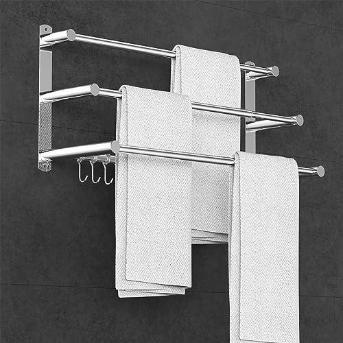 • ★Appearance of towel rack★: 1-Bar Arm and 2-Bar Arm and3-Bar Arm of towel rail, equipped with hooks on both sides, simple and practical. You can attach the product with adhesive, or you can install it by punching holes. Effectively protect the wall from damage using a holeless installation method.