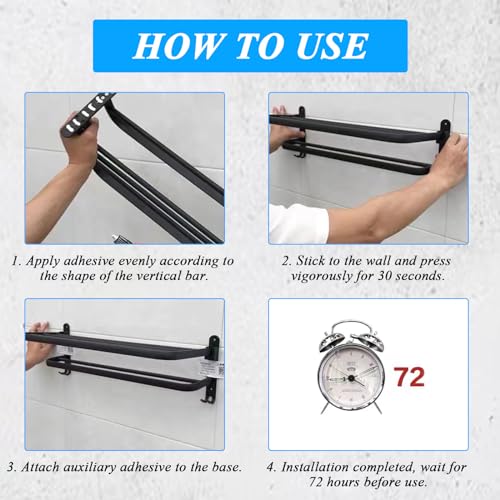 - Easy to Install : The towel holder Support two kinds of installation methods: punching and not punching. 1, Super glue installation without drilling holes (warm reminder: for best adhesion, please wait 72 hours for the glue to stick to the wall before use). 2, If you want to install on uneven walls, we also provide drilling accessories. Easy to install, strong and firm, and without loosening or falling off. Make the most of unused wall space and gain vertical storage.