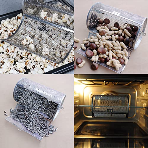 - 🥜Rotating Shaft Design : 360 degree rotary design, more even heating, more delicious food.This Stainless Rotisserie Basket can be used in an oven without rotating function or With rotation function.