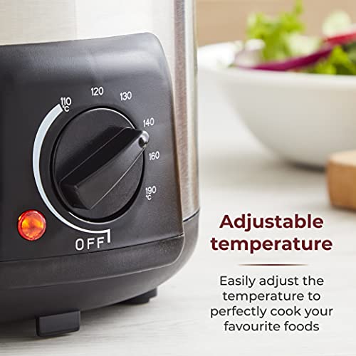 - ADJUSTABLE TEMPERATURE: Easily adjust the temperature of the fryer between 140 – 190°C to perfectly cook your favourite foods