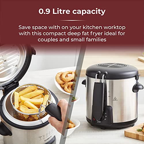 - 0.9L CAPACITY: Save space on your kitchen countertop with this compact deep fat fryer. With all the same premium qualities in a smaller size, this deep fat fryer allows you to make anything from a quick snack to a filling meal - ideal for couples and small families