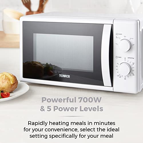 - POWERFUL 700W & 5 POWER LEVELS: A brilliant solution to standard cooking, this microwave delivers quality results with its 700W output combined with 5 power levels. Find the most appropriated level for a wide range of tasty meals