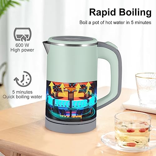 - 【Compact Design】The double wall electric kettle has a compact and elegant design, which is portable and easy to carry and can be easily stored in a suitcase, backpack or bag.Best Choice for Business or Travel.