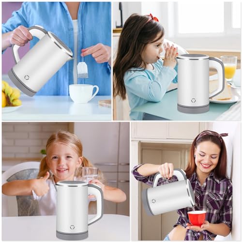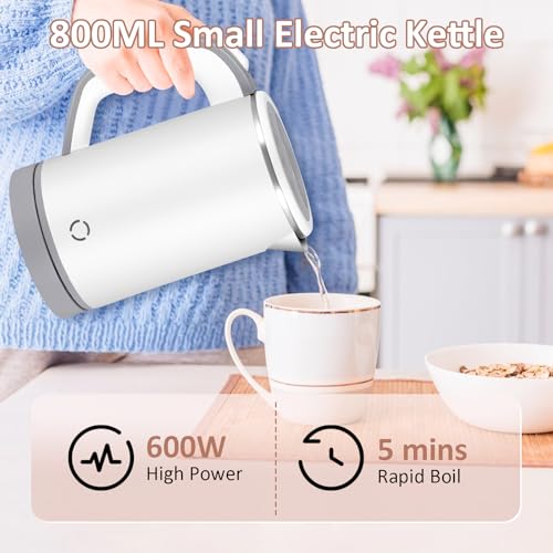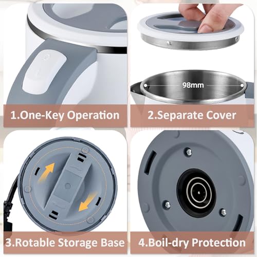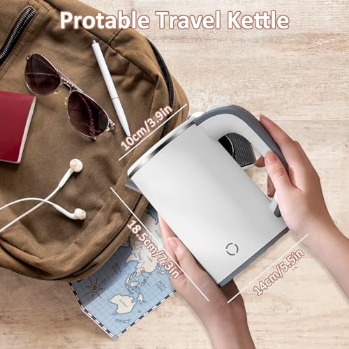 - 【Fast Boil & Double Protection】This mini electric kettle boils water in 5 minutes with 600W power, saving your precious time and spends more time to enjoy your favorite drinks. This small travel kettle adopts safest steam switch and advanced thermostat, ensure auto-shut off and boil dry protection. Double protection allows you for safety use.