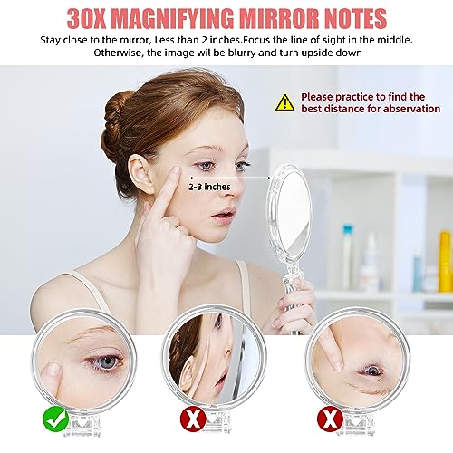 - 【Multi-functional Travel Mirror Folding】This handheld magnifying makeup mirror offers a range of practical functions. One side features a regular 1x mirror, suitable for daily use, while the other side provides a powerful 30x magnification for precise makeup application and grooming. Whether it's for everyday makeup or intricate detailing, this mirror meets all your needs.