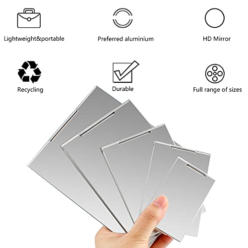 Product Description Laeeyin A wonderful, versatile portable folding mirror ——Perfect choice for your home, office, travel and outdoor use. We will provide you with mirrors in five different sizes, which are enough to meet all your daily needs.Wide Range of Applications: small desk mirror is suitable for personal use in hotels, beauty salons, spas, dormitories and homes to help check skin conditions, apply makeup, comb hair, etc.; It can be a nice must have tool for women, girls and ladies. Mirror model 1: 6X7cm (2pcs) -This is our main hot-selling modelMirror model 2: 8.5X5cm (2pcs)Mirror model 3: 11.5X8cm (1pcs)Mirror model 4: 15X10cm (1pcs)Mirror model 5: 20.3X14cm (1pcs) Thin travel mirror The thickness is only 0.3cm.Ultra Thin The compact travel mirror is very thin and lightweight, You can easily carry it in your pocket, handbag or make-up bagdoes not increase the volume of the handbag. 180°Flip cover design The mirror surface has a flip cover design. The top cover can be turned into a holder and stands for easy use on the table..The folding mirror can be freely adjusted 180 degrees, and the mirror angle can be adjusted according to your needs. Aluminum alloy material The aluminium alloy metal shell is durable, not easy to break and can protect the mirror well. When you wear the mirror, you don't have to worry about the mirror being easily broken. Note: Manual measurement, please allow slight errors on size.Fragile items, pay attention to careful use, to avoid breaking to scratch yourself.Small and pointed parts included, please keep away from little kids. Compact and Portable Small and compact, which can be stored in your makeup pouches, backpacks or even your pockets when you are on vacation or business trips, to carry around.Foldable mirror is simple in design, elegant and classic, not easily outdated, small and exquisite, convenient for your use. High-definition mirror, clear reflection, smooth surface, no deformation, no deformation, durable. Made of aluminum alloy, suitable for men and women, boys and girls. Very strong and well protected. Great gift idea: a wonderful gift for any occasion, birthday, wedding, anniversary, Christmas, Valentine's Day, Mother's Day, etc., an essential for everyday use.