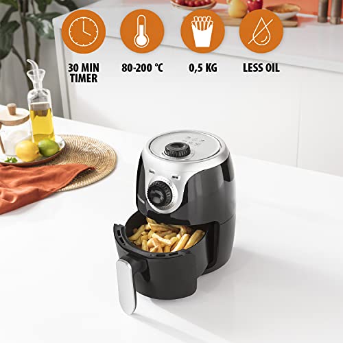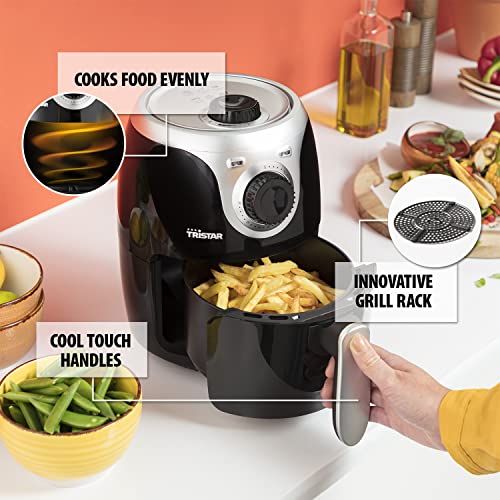 From the manufacturer Tristar Compact Mini Air Fryer Slim compact design The Tristar 2 L Air Fryer is compact and will not take up much room in your kitchen. Ideal for students or small families allowing you to cook 2 portions at once. You can also use this air fryer to prepare a variety of meals such as meat, fish, vegetables, potatoes and even sweat treats. Adjustable thermostat & timer Use the analogue control panel to set the temperate and timer. The temperature can be set from 80⁰C to 200⁰C and the timer with alarm can be set up to 30 minutes. Hot air convection technology The hot air convection technology allows you to fry, grill, roast and bake without using oil. Cook healthy meals without oil and enjoy crispy results. Easy to clean With non-stick coating, removable accessories and removable door, this air fryer oven can be quickly and easily cleaned with warm water and soap. Grill rack included Comes included with an inoculative grill rack which helps to evenly cook and circulates hot air under your food. User friendly Also equipped with cool touch handle, overheat protection and non-slip feet. Tristar Air Fryer Range Tristar FR-6980 Air Fryer Add To Basket Tristar FR-6989 Air Fryer Add To Basket Tristar FR-6996 Air Fryer See Details Tristar FR-6964 Oven See Details Customer Reviews 4.6 out of 5 stars 743 4.6 out of 5 stars 743 4.6 out of 5 stars 743 — Price £59.99£59.99 £55.23£55.23 — — Capacity (L) 2 3.5 5.2 10 Amount of chips (kg) 0.5 0.9 1.5 0.9 Portions 2 5 9 5 Basket diametre 16 21 21.5 X Power (W) 1000 1500 1800 1800 Timer 30 mins 30 mins 30 mins 24 h Temperature 80 - 200 °C 80 - 200 °C 80 - 200 °C 30 - 200 °C Presets X X X 10 Display Analogue Analogue Analogue Digital