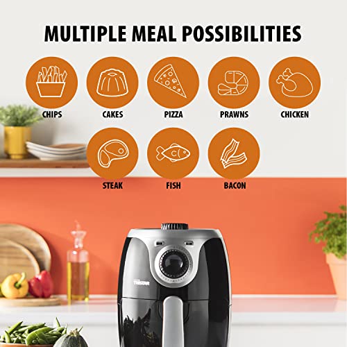 - Slim compact design: The Tristar 2 L Air Fryer is compact in size and will not take up much room in your kitchen. Ideal for students or small families as it allows you to prepare two portions of fries at one time. You can also use this air fryer to prepare a variety of meals such as meat, fish, vegetables, potatoes and even sweat treats.