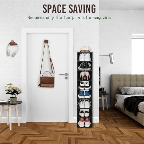 - 【Space Saving】This 10-Tier corner shoe shelf maximize every inch of your small spaces with this compact and stylish corner shoe rack, saving you valuable floor space, tthe footprint of just one book can hold 9 pairs of shoes.