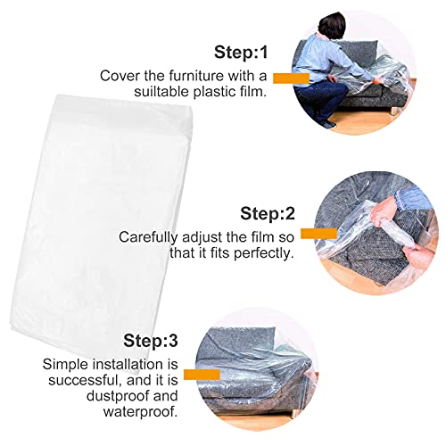 - 🛏️ Highly Transparent & Tear-resistant: 0.2mm PVC thicker & sturdier than other plastic sofa covers. Delivers ultra strong protection to keep your furniture in perfect like new condition year after year. Plastic Furniture Cover for multi-purpose , Waterproof and dust-proof, great for sofa couch storage indoor and outdoor