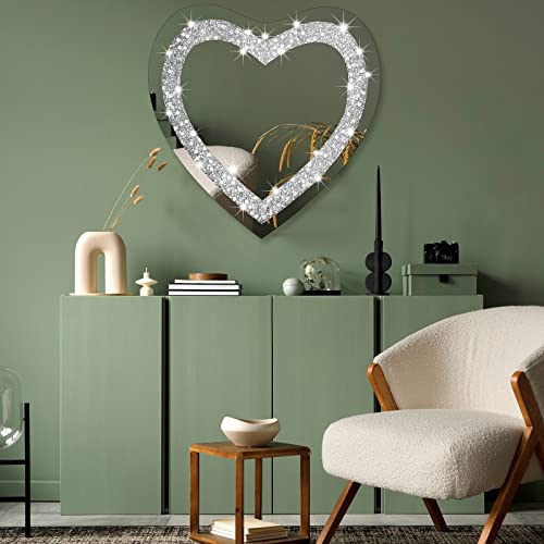 - Wide Applications: if you are looking for silver room decoration for women, no further than our heart wall hanging mirror; Its sparkly diamond like appearance will add a touch of elegance to the bedroom and can be matched with different styles of home decoration, suitable for many places in your home, bathroom, powder room, dressing table, bedroom, living room decorative mirror