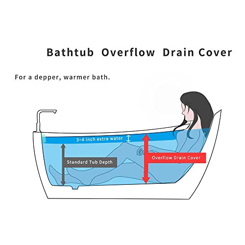 - 【Deeper Bath & Better Experience】 Tucana overflow drain cover enhance bath experience by adding inches water into the tub. The safety hole on the top prevents the tub from overflowing and ensure excess water properly drain; It stop the noisy sound of water trickle down. Enjoy your peaceful and relaxing bath