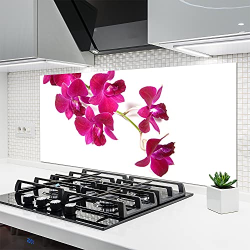 Tulup Glass Splashback for Kitchen - 55.1 in x 27.6 in / 140x70 cm - Cooker Wall Protection Tempered Glass - Flowers Floral