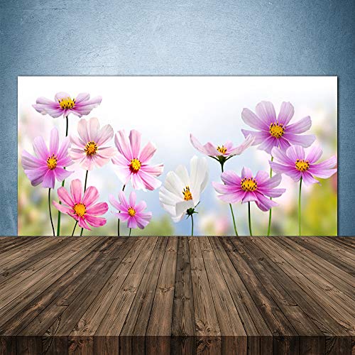 Tulup Glass Splashback for Kitchen - 55.1 in x 27.6 in / 140x70 cm - Cooker Wall Protection Tempered Glass - Flowers Floral