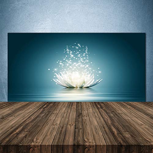 Tulup Glass Splashback for Kitchen - 55.1 in x 27.6 in / 140x70 cm - Cooker Wall Protection Tempered Glass - Lotus Flower Blossom Floral