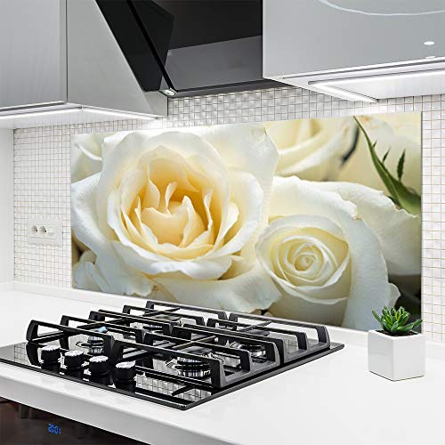 Tulup Glass Splashback for Kitchen - 55.1 in x 27.6 in / 140x70 cm - Cooker Wall Protection Tempered Glass - Roses Floral