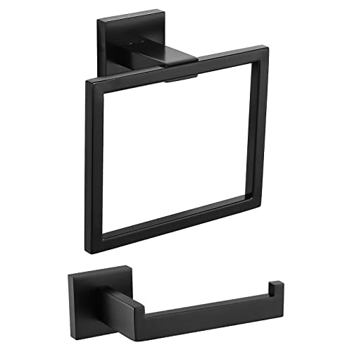 TURS Towel Ring Contemporary Style Stainless Steel 304 Chrome Bathroom Accessories (Towel Ring) (Black)