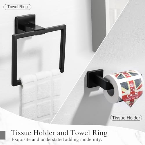 • 🤩MODERN & SAFE DESIGN—Designed with clean lines and sturdy construction, the bathroom accessorries sets provide everyday efficiency with style. Unique squared shape and concealed mounting hole add a touch of modern design to your bathroom, chamfering edges protect your body from scratching.