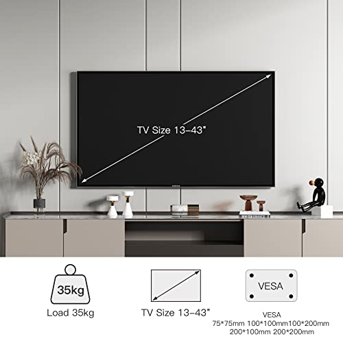 - High quality steel: The swivel TV wall mount is made of durable metal, so that up to 35 kg can be mounted. This swivel TV wall bracket has passed the 3-fold weight test for load capacity. This vesa wall mount is suitable for all TVs or monitor with a screen size of 13 to 43 inches. Devices with the following VESA standards are compatible: 75 x 75 mm, 100 x 100 mm, 200 x 100 mm, 200 x 200 mm