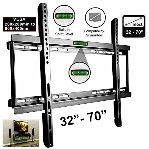 TV Wall Mount 32-70 Inches - Ultra Strong Slim Fixed Bracket Heavy Duty Super 50KG with Fixing Kit for Flat Curved Screen LED, LCD OLED and Plasm