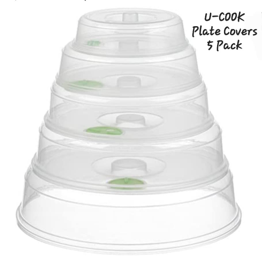 - U-COOK 5 Piece Set microwave food covers are made of food grade PP material with BPA free. Microwave cover is a good helper in your kitchen. The food microwave lids are suitable forcover cooked food and leftovers, a good way to cover food.