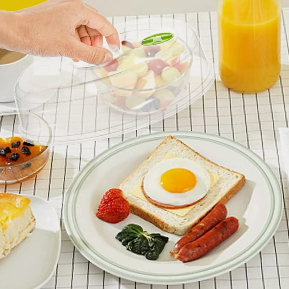 - The microwave covers come with steam vents. Easy to release steam efficiently, allows the food to be heated evenly. Finger grip handle easy to hold and lift.