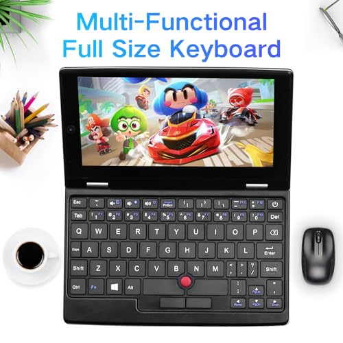 - 🚀【Light and Portable/Save Space】7 -inch mini laptop 1280*800 IPS. Due to its small size, the MINI laptop computer occupies less desktop space. This makes them very suitable for use in a small working environment or crowded public places, such as coffee shops and aircraft seats. The MINI laptop is very light and small, easy to carry. They are usually lighter than traditional laptops, suitable for use during the journey, when traveling, or on occasions that need to be moved frequently.