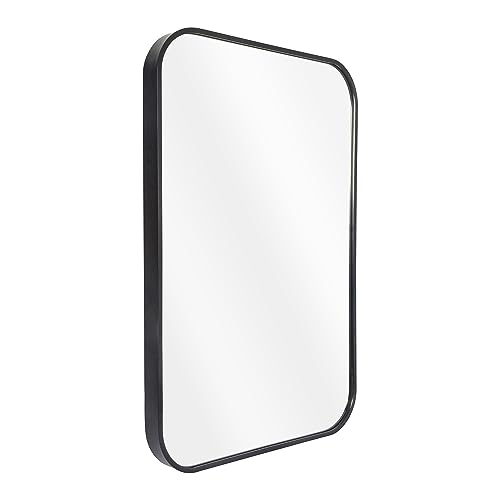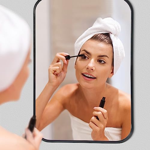 Home Hallway Furniture Umzodo 20″x30″ Brushed Matte Black Mirror for Wall, Rounded Rectangle Mirror with Metal Frame Deep Set Design Hanging for Bathroom Entryway Vanit
