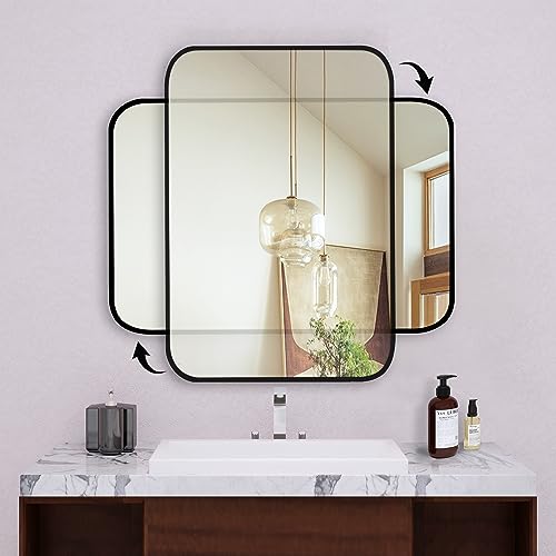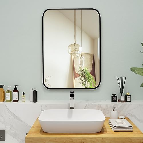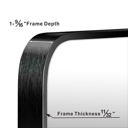 Umzodo 20"x30" Brushed Matte Black Mirror for Wall, Rounded Rectangle Mirror with Metal Frame Deep Set Design Hanging for Bathroom Entryway Vanit