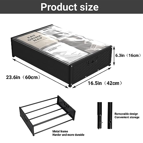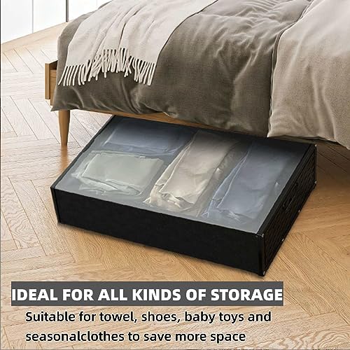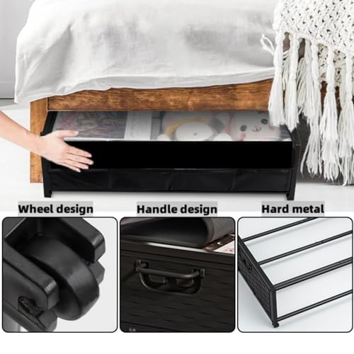 - Sturdy Under Bed Storage Box This under bed storage box is constructed of a sturdy metal frame, able to bear heavy loads. It is more durable and easier to clean than ordinary non-woven storage boxes, and it will not lose its shape. It can hold up to 22 lbs.