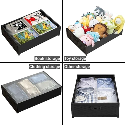 - Design with Wheels We have equipped this under bed drawer with four wheels, so that you can slide it on the floor and carpet conveniently. The four wheels are all made of high-quality ABS plastic with a smooth surface for smooth movement without scratching the floor.
