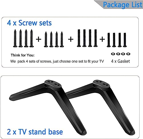 - WIDE COMPATIBLE: Universal TV stand mount is compatible with Sony, LG, Philips, Sharp, Vizio, Toshiba, TCL and other brands of TVs. The hole spacing of the universal TV bracket is 15mm-20mm, please measure the mounting holes of your TV before purchasing.