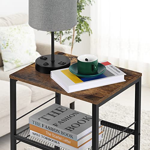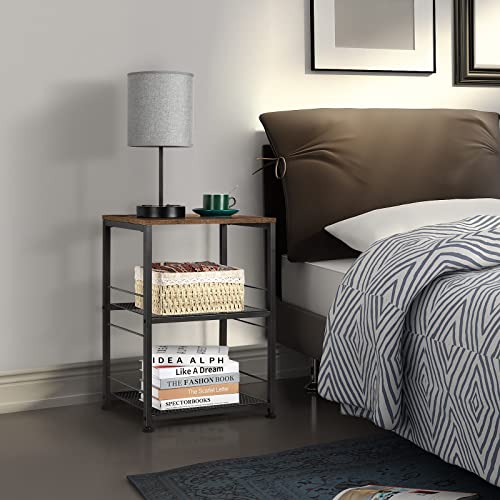 - 【Large Storage Capacity】Our industrial side table is a three-tier design that provides large storage space. One wooden table board and two metal mesh shelves. It's perfect to store coffee cups, documents, photos, magazines, laptops, or small printers.