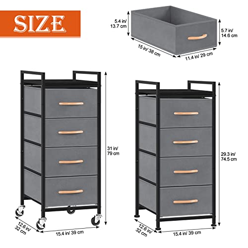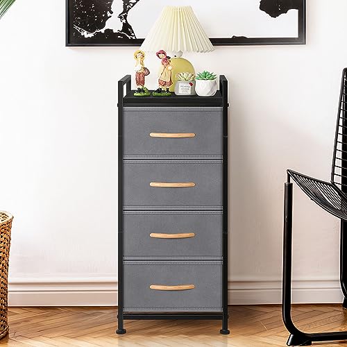 - ✅ Widely Application:Our chest of drawers offers 4 large capacity fabric drawers to store seasonal clothing, towels, blankets, socks, and more in your bedroom. If you want to put the grey tall drawers cabinet in the living room, it can also be used to store books, children's toys, etc.