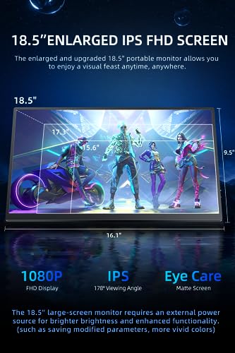• 🎮[Wide Compatibility & Plug and Play] The portable gaming monitor features full-function Type-C ports and a Mini HDMI port, ensuring compatibility with various devices such as laptops, PCs, phones, gaming consoles (including PS4, PS5, Nintendo Switch) and more. It also includes a 3.5mm audio input to enhance your entertainment experience during video playback and gaming. Simply plug and play for seamless connectivity.