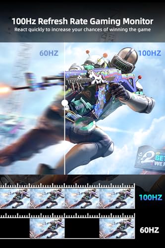 • 👾 [100Hz Refresh Rate & Game Setting] Experience smoother motion and reduced blur with the 100Hz refresh rate, perfect for gaming and action-packed content. Game OSD provides player-centric modes (FPS/RTS) for immersive gameplay. Customize settings with black equalizer, backlight adjustment, and game picture optimization. Enjoy booming sound and crystal-clear audio with built-in dual speakers for videos and games.
