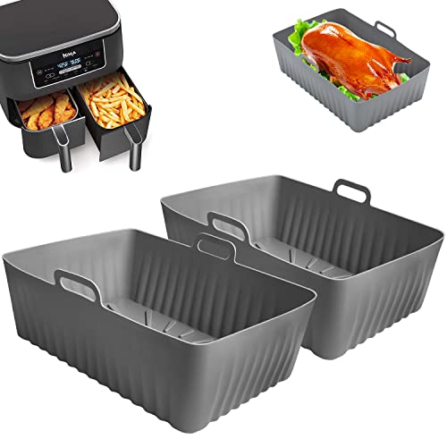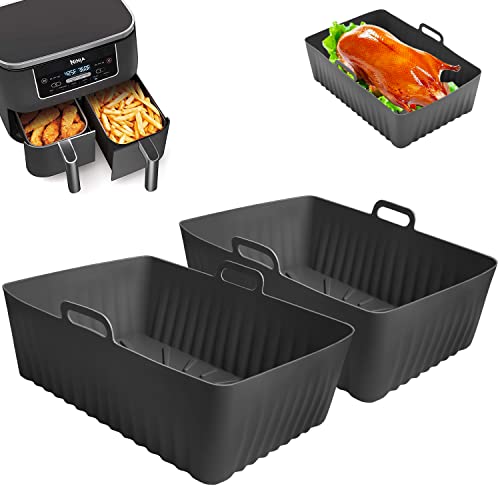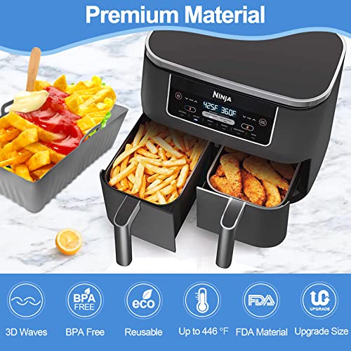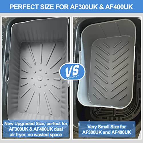 - 🍗【Designed for Ninja Air Fryer AF300UK/AF400UK】This silicone air fryer liner has a new size design, measuring 8.46in* 5.7in* 2.75in. It makes full use of the interior space of the AF300UK/AF400UK tray and is larger than other brands of air fryer liners: 7.67in*4.92in*2.75in (19.5cm*12.5cm*7cm). Improves the space utilisation of the Ninja Air Fryer tray. Also compatible with Tower T17088 T17100.