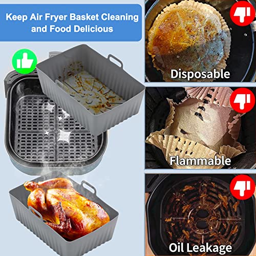- 🍠【Food Grade Silicone】Our reusable silicone air fryer liners are made of 100% food grade silicone. Which is non-stick, non-toxic, non-BPA, and highly heat resistant up to 464°F (240°C) and down to -40°F. The air fryer liners with heat resistant can keep original flavour of your food and meet your family needs.