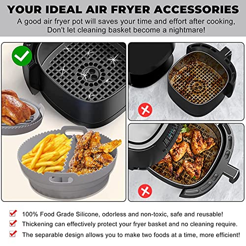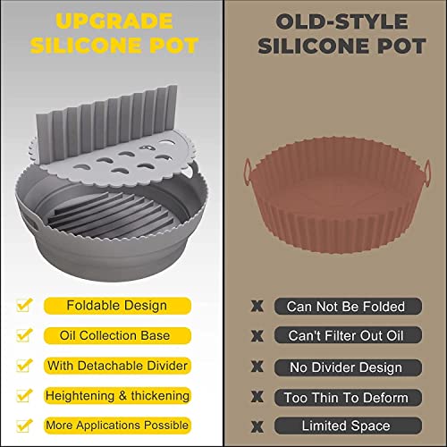 Upgraded 3 PCS Round Air Fryer Silicone Liners, 8.5Inch for 5Qt to 8Qt Reusable Air Fryer Liners, Foldable Air Fryers Basket with Detachable Divi