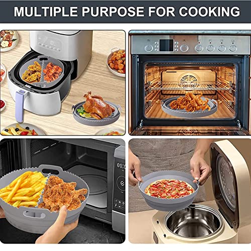 Home Small Appliances Upgraded 3 PCS Round Air Fryer Silicone Liners, 8.5Inch for 5Qt to 8Qt Reusable Air Fryer Liners, Foldable Air Fryers Basket with Detachable Divi