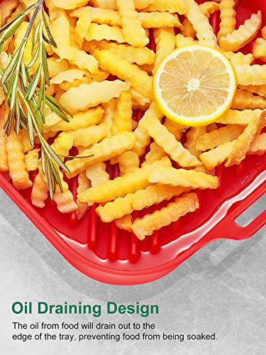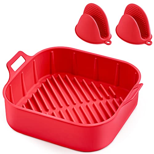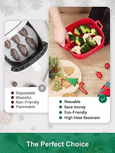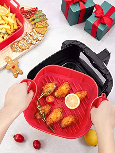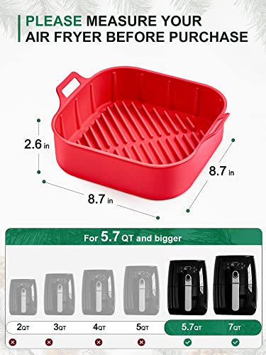 - Wide Application- Our silicone air fryer liner can be used for baking, roasting, frying, air fryer, microwave, steamer, serving food or fruit plate. The reusable silicone pot is a much better choice to make your life healthier and more eco-friendly! NOTE: Please measure your air fryer first, fitting 5.7 QT & bigger square air fryers. Demension: 8.7"(L) x 8.7"(W) x 2.6"(H), square shape.