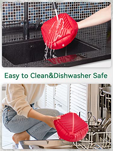 - Thoughtful Designs: The silicone basket is designed with hollowed handles on both sides and equipped with a pair of heat-insulated silicone gloves to protect your hands from burns when you are removing the silicone pot. Its bottom is high in the middle and low in the surroundings which helps to sperate food and oil, the food is more delicous and healthier.
