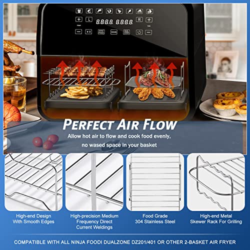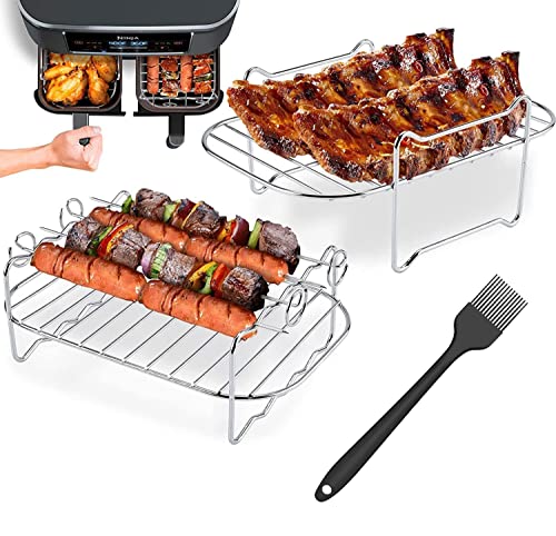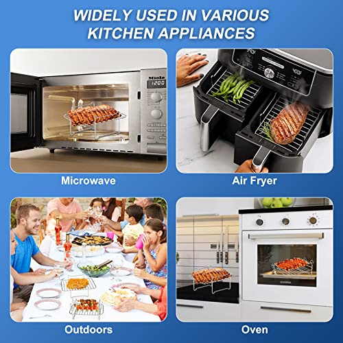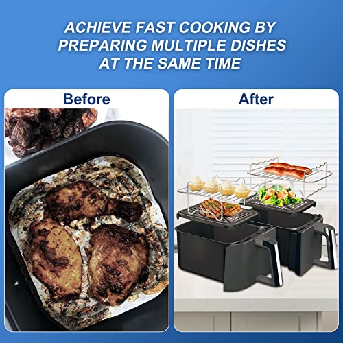 - 【Wide Compatibility】The multi-level rack is compatible for Ninja Foodi, Instant Vortex Dualzone, Chefman and other dual basket air fryers, adding more features and versatility to them. You can also use it as a steak grill and steam in the air fryer.