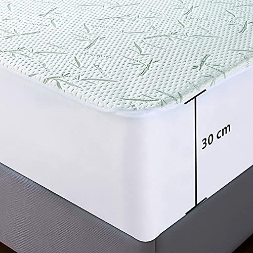 - BAMBOO MATTRESS PROTECTOR: The small double sized bamboo mattress protector measures 120 cm by 190 cm - fits up to 30 cm deep; fitted cover style design with elastic all around.