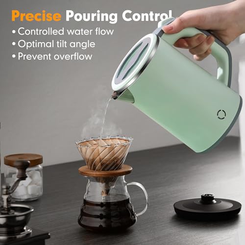 - 【Easy Cleaning】-This electric kettle features an easy-to-clean design, making it quick and simple to clean. Simply fill the kettle with water and add a few drops of dish soap. Turn on the kettle and let it boil for a few minutes. Then, rinse it clean with water.