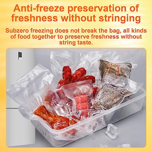 - 【Maintain Freshness & Taste】Keep your food fresh up to five times longer with our vacuum sealer bags. By reducing air exposure, they prevent freezer burn and lock in flavor and nutrition, maintaining the taste and freshness of your food.