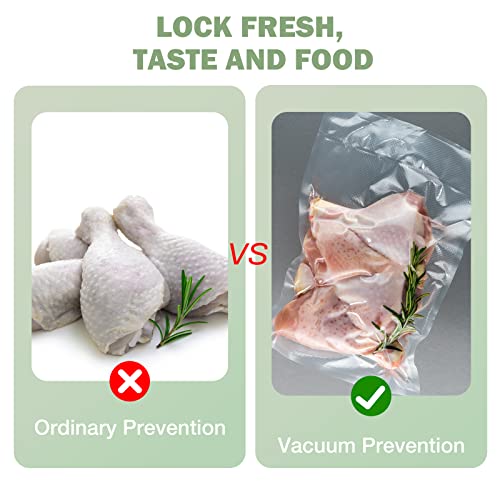 • The product has strong air tightness and is not easy to leak gas: The vacuum sealer bags have a unique single-sided embossed design that maximizes air extraction, effectively isolates oxygen and moisture, maintains freshness, nutrition and flavor of foods and prolongs shelf life 3-6 times.