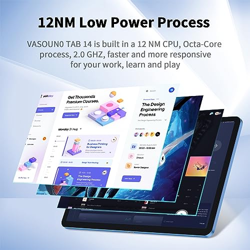 • ★High Performance Operation: With a 12NM Octa-core 2.0 Ghz processor, the VASOUN TAB 14 tablet is able to run multiple programs with high efficiency and it is Certified by Google, allowing you to download thousands of applications from the Google App Store, Facebook, YouTube, TikTok and other apps. The 10 inch tablet has high stability performance and great gaming performance. When playing games, you can experience very smooth animation effects.